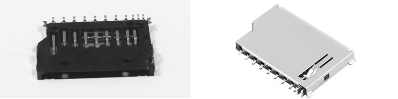 SD卡的根據(jù)尺寸可以分為SD卡、miniSD卡(比SD小)、microSD卡(比miniSD小,以前叫TF卡)3類。不同尺寸的卡,與之配合的卡座也不盡相同,但是不同尺寸的卡座需要監(jiān)控的品質(zhì)問題都集中在與SD卡接觸pin連接的彈點(diǎn),與多媒體設(shè)備主板連接的焊腳上。彈點(diǎn)以及焊腳的尺寸,位置的不良,直接導(dǎo)致后續(xù)的接觸以及焊接的不良,間接引發(fā)后期使用時(shí)的數(shù)據(jù)無法傳輸。