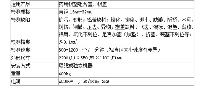 機器視覺瓶蓋檢測系統(tǒng)技術參數(shù)